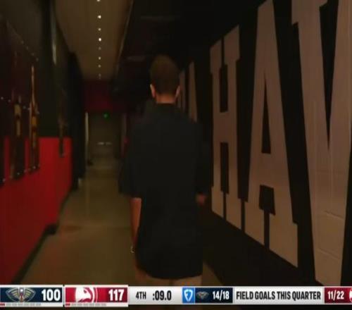 没有等到比赛结束,特雷-杨和队友以及场边的观众一一告别,随后转身走向了球员通道。与球迷击掌告别,成为了他作为老鹰球员留在这片主场的最后一个背影。最后转播方甚至连比赛也不播了,镜头锁定在球员通道内的特雷-杨。