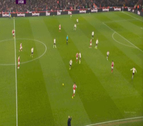在萨卡的牵制下,右肋区域也形成了不错的进攻: