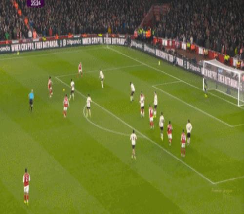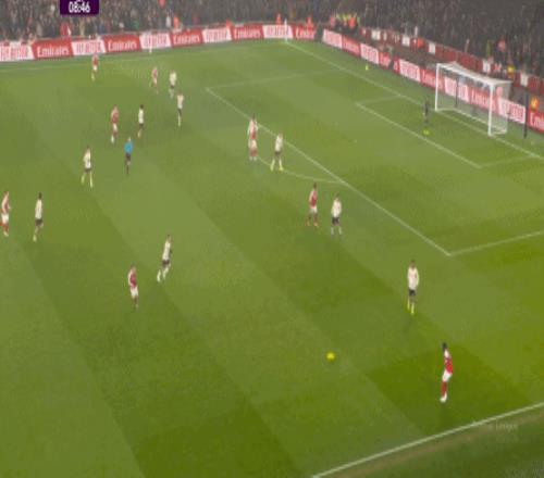 不要纠结萨卡一对一的时候,为什么没有其他队友上前分兵跑位,吸引对手的防守注意力?也不要纠结当萨卡和这一侧肋部形成成规模的进攻的时候,左半扇的队友为什么无法做到类似的事情,只能在开场16分钟后,送出一次传中?